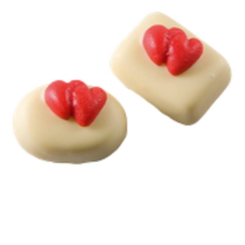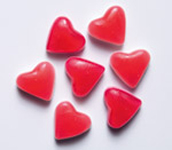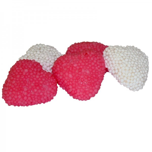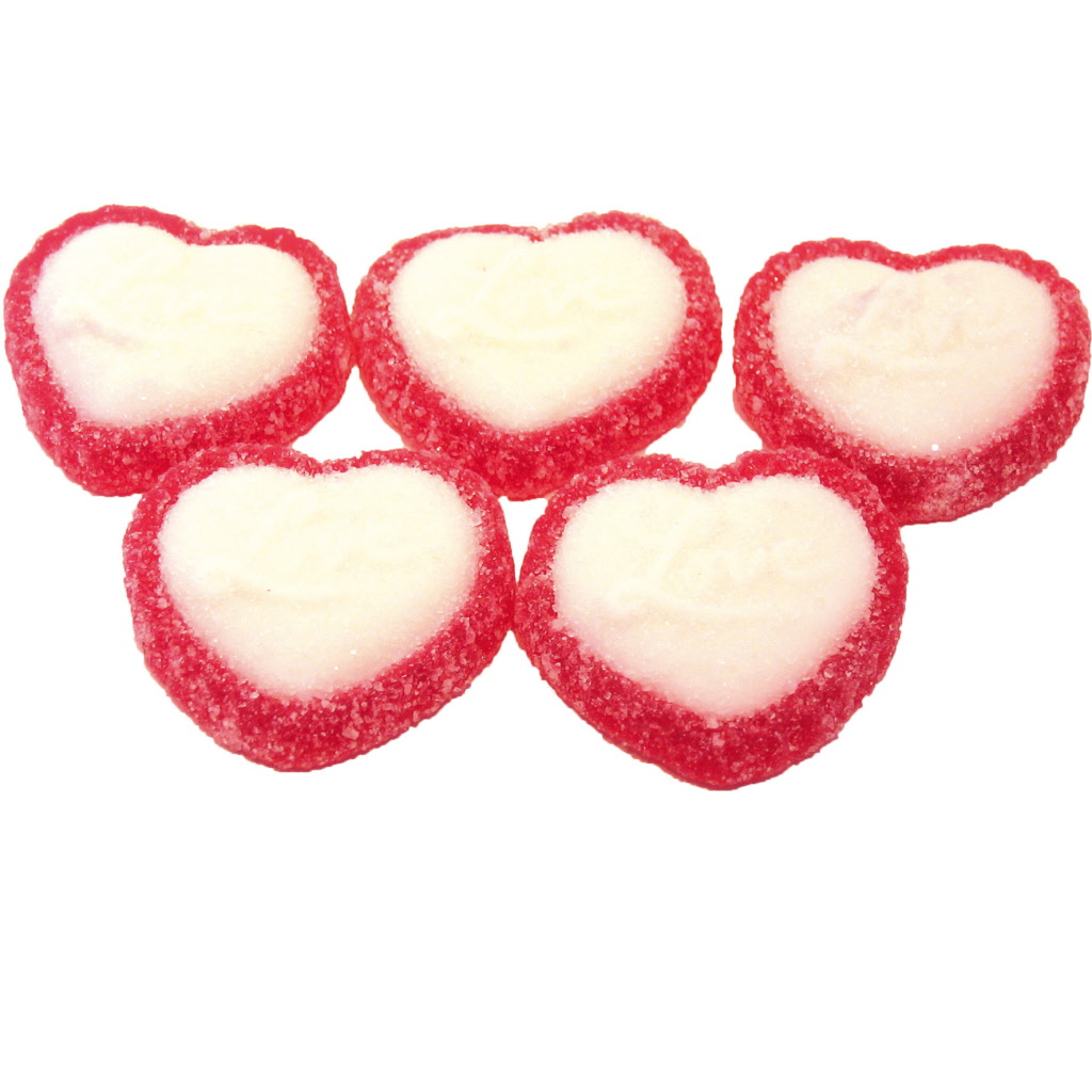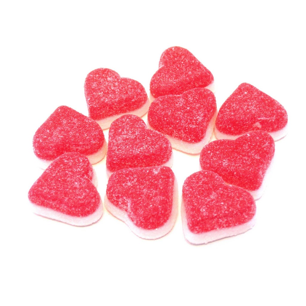 Heerlijke gum hartjes, uitgevoerd in rood-wit en rood-roze of