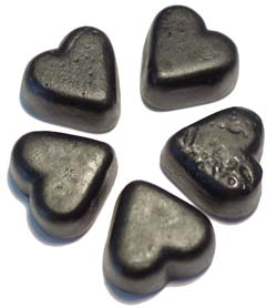 Hierbij kunt u voorbeelden zien van verschillende hartvormige snoepjes, hartlolly's en chocolade