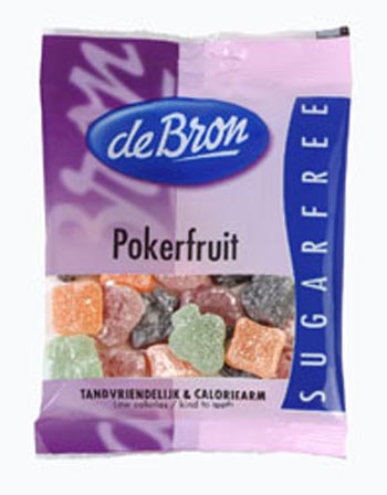Pokerfruit, zachte gom met suikerlaagje, heerlijke fruitsmaak. Suikervrij, glutenvrij en lactosevrij.