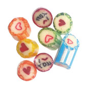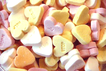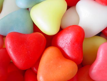 Hierbij kunt u voorbeelden zien van verschillende hartvormige snoepjes, hartlolly's en chocolade